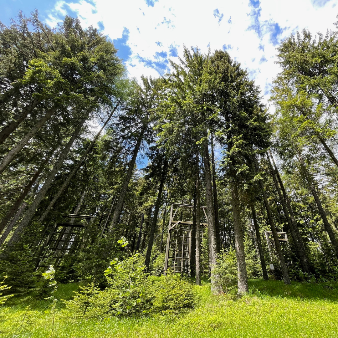 Eine Schnittstelle zwischen Natur und Kultur, wie die beiden sagen. Mit hölzernen Portalen, einem Fels aus Gneis im Zentrum der Anlage und einem Holzsteg, der dem Mauerverlauf folgt und mit den hochragenden Bäumen die Dimension des architektonischen Wunderwerks in die Natur übersetzt. Ein unglaublich poetischer Ort, an dem immer wieder Konzerte und Feiern stattfinden. Ideal zum Innehalten und Kraftschöpfen.